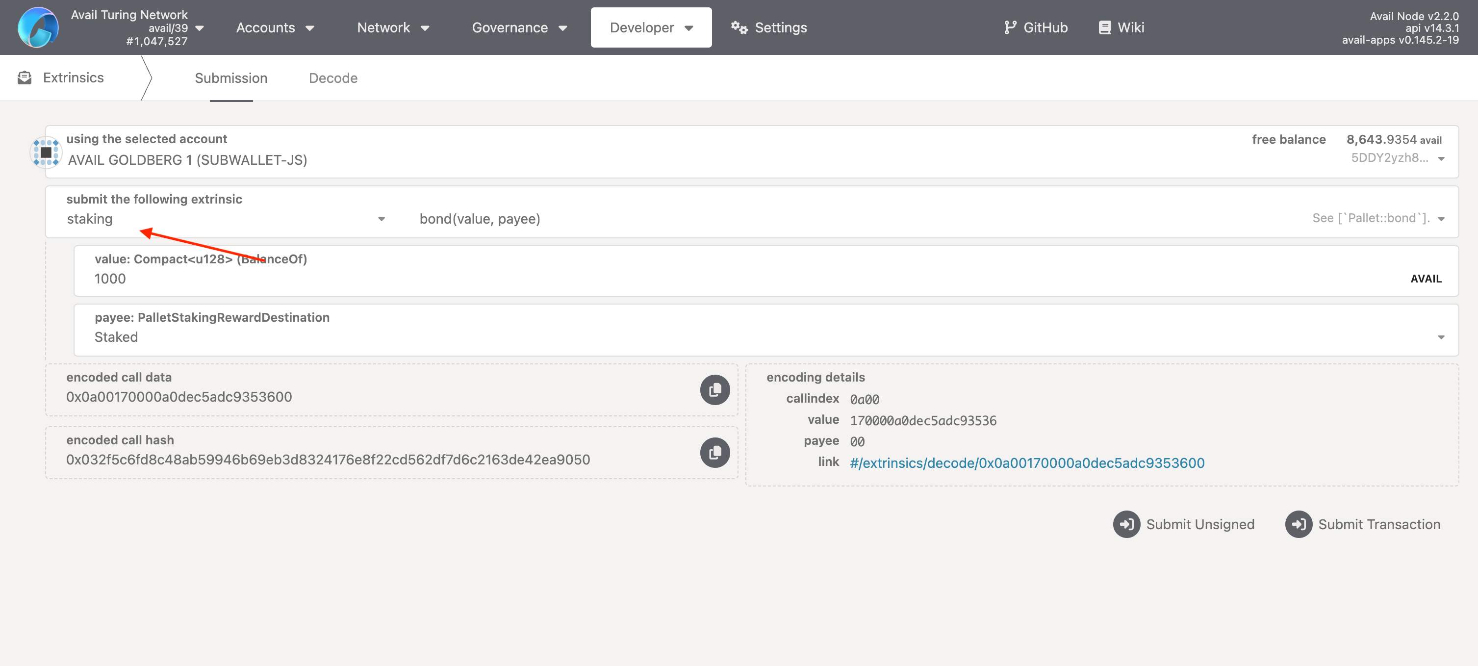 Let’s verify this by trying to transfer and stake AVAIL from the main account respectively via the proxy.